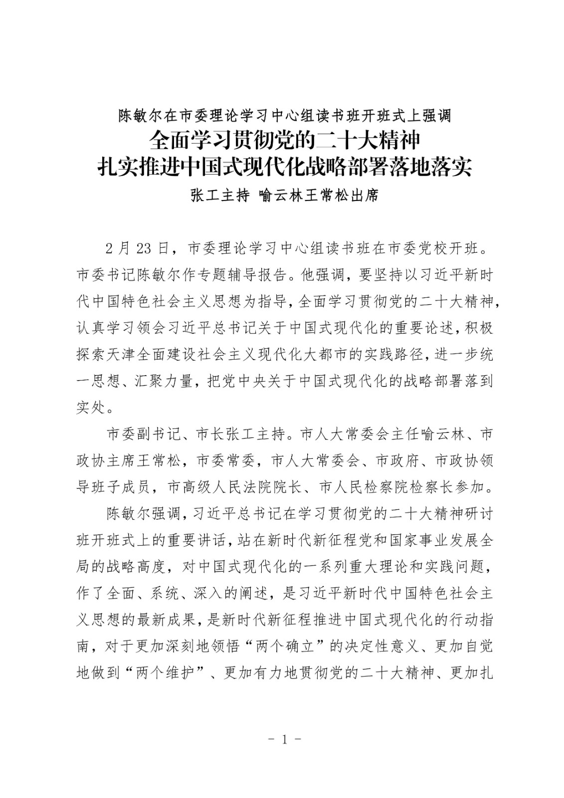 陈敏尔在市委理论学习中心组读书班开班式上强调全面学习贯彻党的二十大精神扎实推进中国式现代化战略部署落地落实