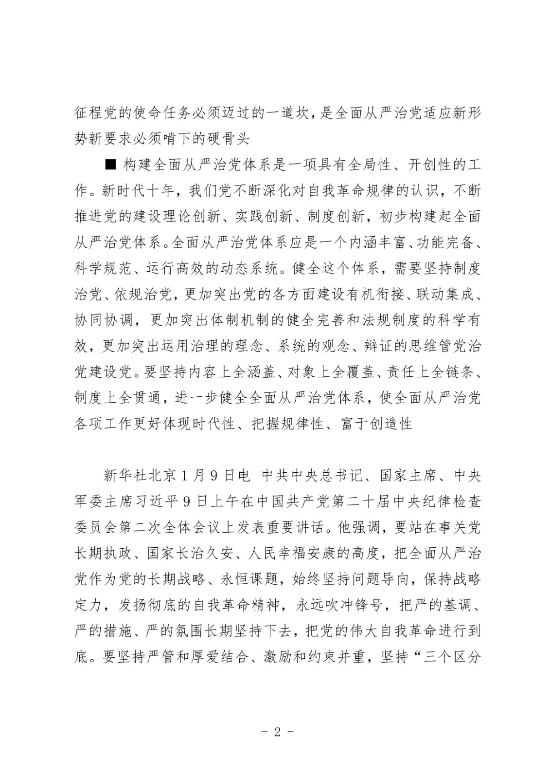 习近平在二十届中央纪委二次全会上发表重要讲话强调一刻不停推进全面从严治党保障党的二十大决策部署贯彻落实