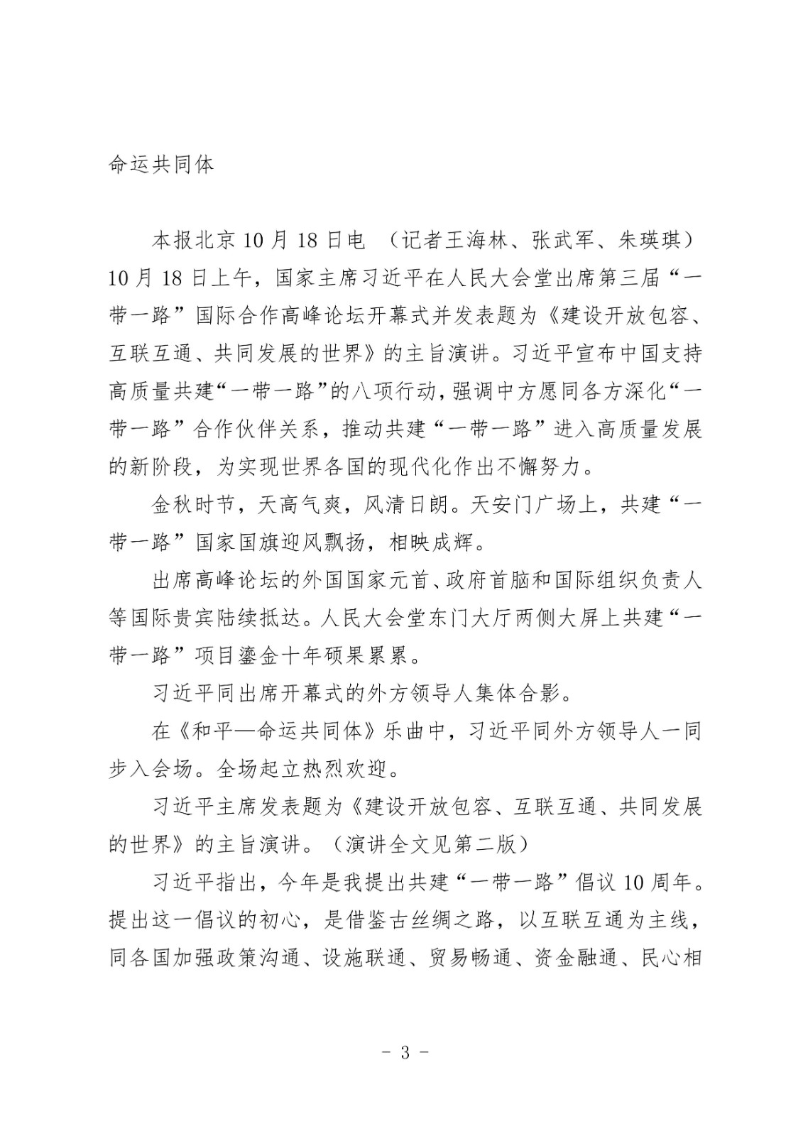 习近平出席第三届“一带一路”国际合作高峰论坛开幕式并发表主旨演讲