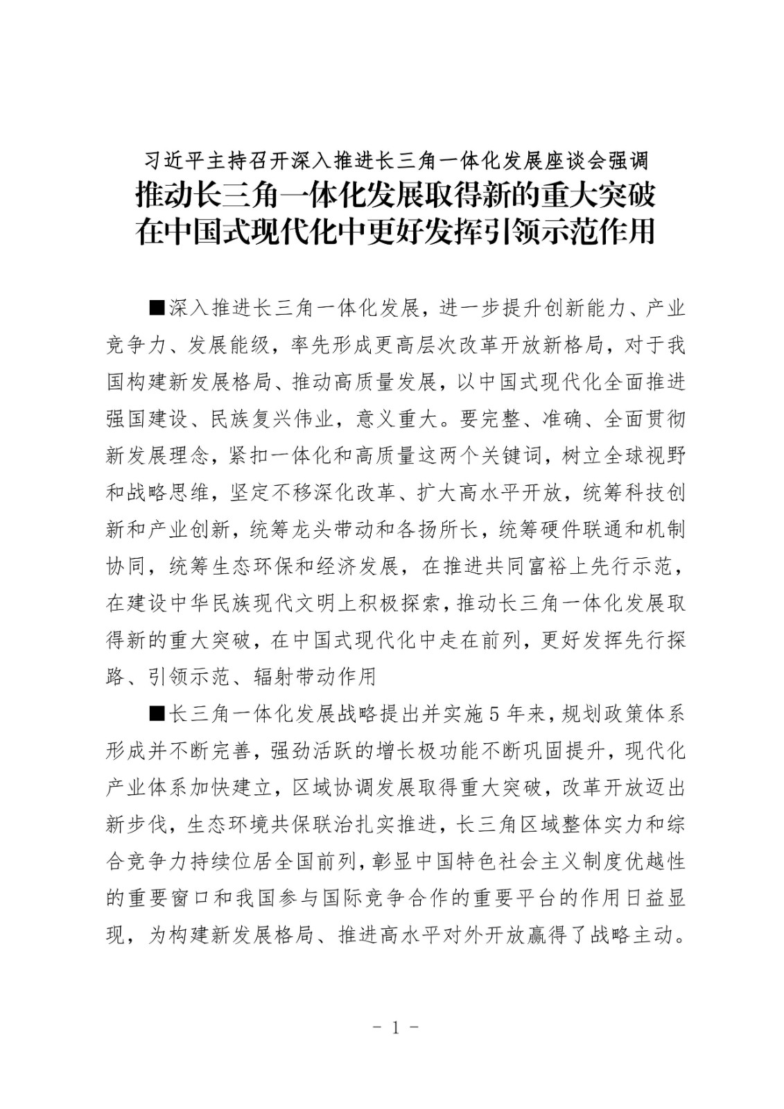习近平主持召开深入推进长三角一体化发展座谈会
